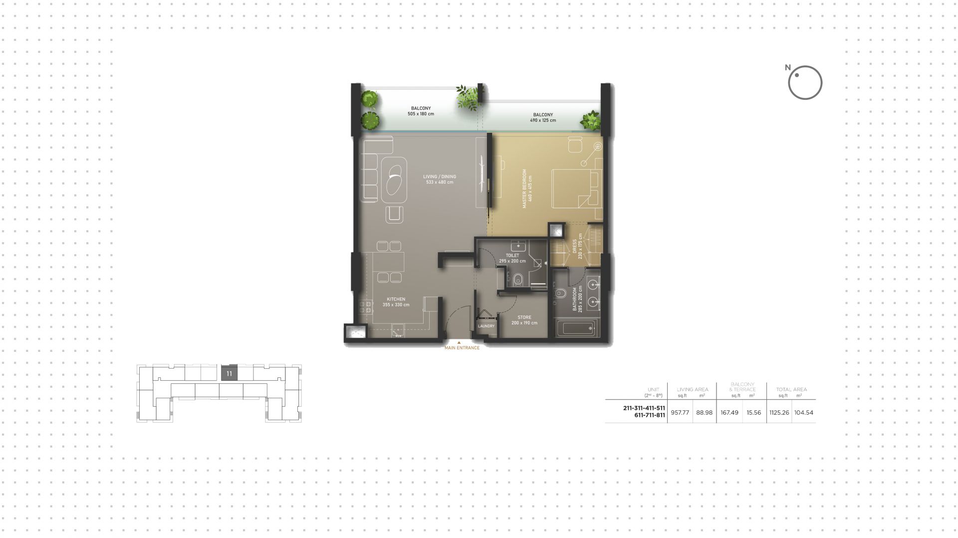 An apartment with 1 bedroom in the complex Olaia Residences. The apartment with an area of 1 125 ft² is located on the 3 of 10, finished. Windows: panoramic. View from the windows: park. Delivery of the project is scheduled for the 4st st quarter of 2027.