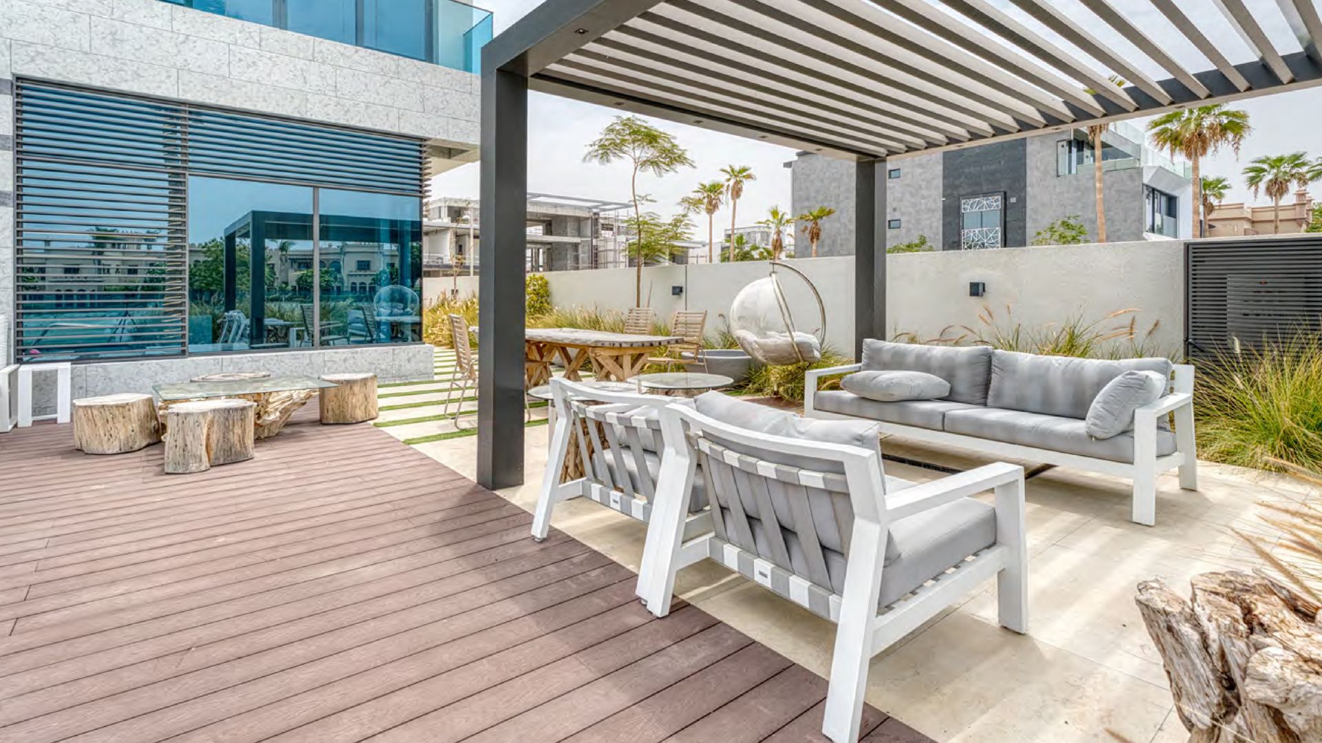 Вилла с 6-ю спальнями площадью 8 478 кв. футов. Ремонт в каждой спальне выполнен из качественных материалов. В доме есть 9 ванных комнат, оснащенных премиальной сантехникой. Кухня оборудована мраморными столешницами и современной техникой. На территории виллы вы найдете бассейн с потрясающими видами и прямым доступом к пляжу Palm Jumeirah.